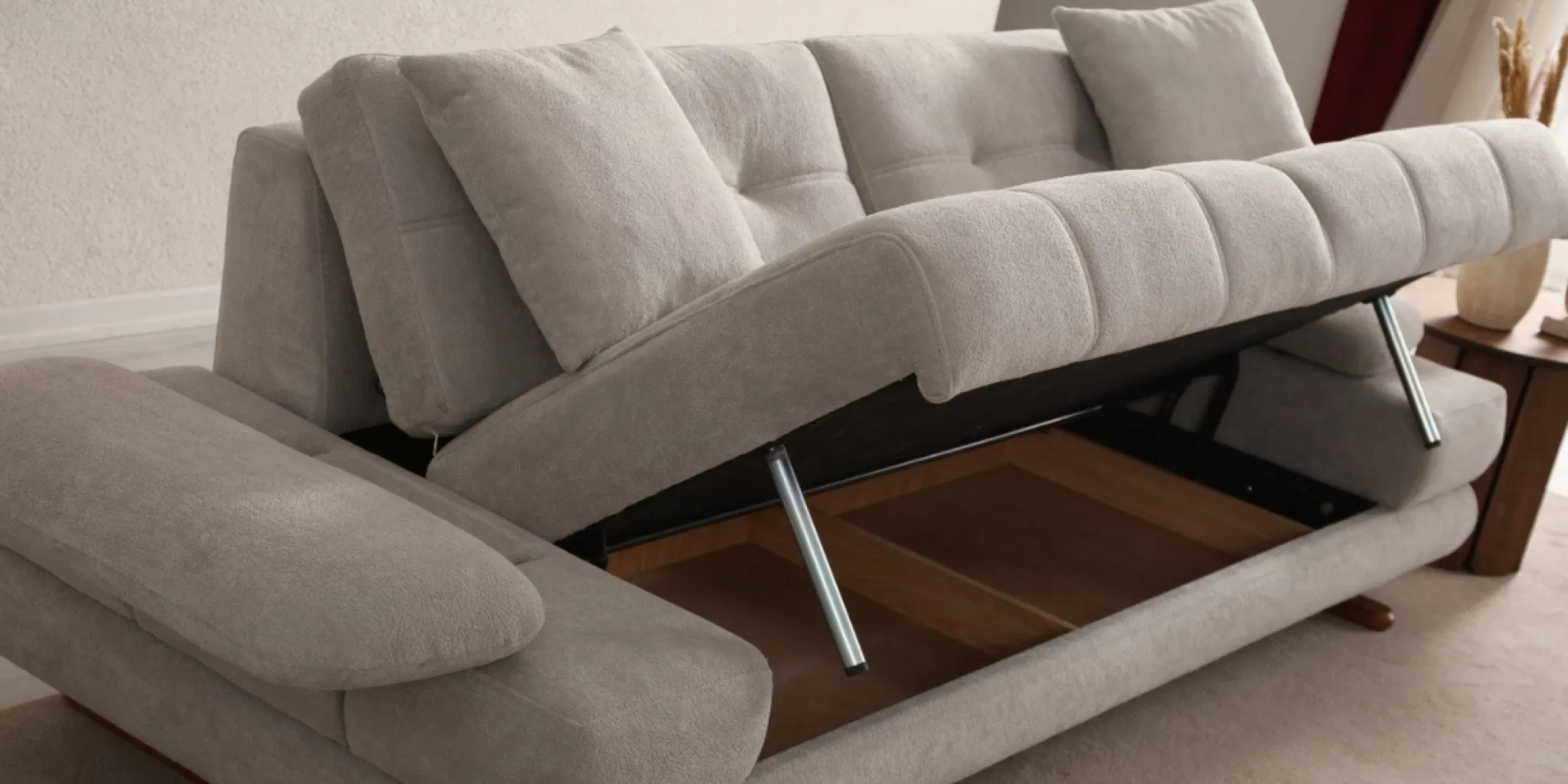 Fonksiyonellik 2 adet üçlü koltukta yatak ve sandık özelliği vardır.