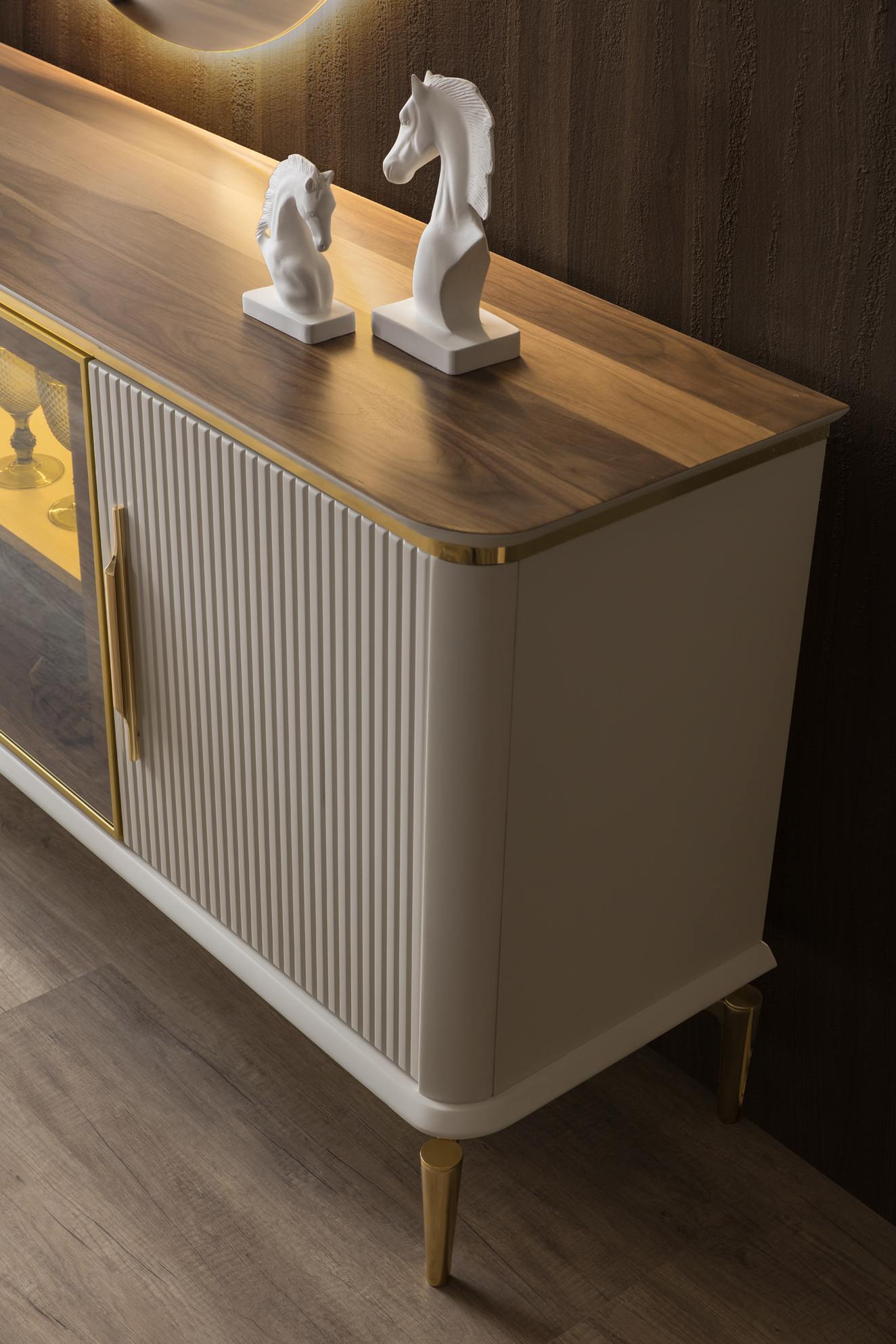 | Konsol | Ön yüzler, MDF malzeme üzeri lake boya ile üretilmiştir. Üst tabla orijinal seramik malzemeden üretilmiştir. |